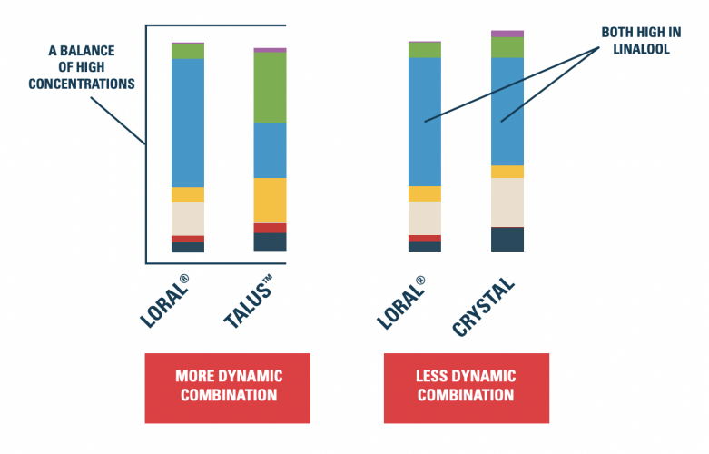 Při vytváření různých kombinací chmelů s aromatickými látkami se zaměřte na vyvážení vysokých koncentrací. Například skvělou kombinací budou chmely Loral a Talus. Loral obsahuje vysokou koncentraci látky linalool, zatímco Talus obsahuje geraniol, čímž spolu vytvoří zajímavou kombinaci. Naopak, Loral není vhodně kombinovat s chmelem Crystal, který stejně jako Loral obsahuje podobné množství látky linalool. Jejich kombinace je poté kontraproduktivní.
